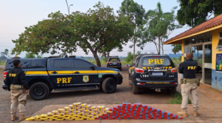 Durante a verificação dos itens obrigatórios do veículo, a equipe localizou 101 tabletes de substância relacionada à crack em um compartimento falso do veículo, totalizando 110 kg.