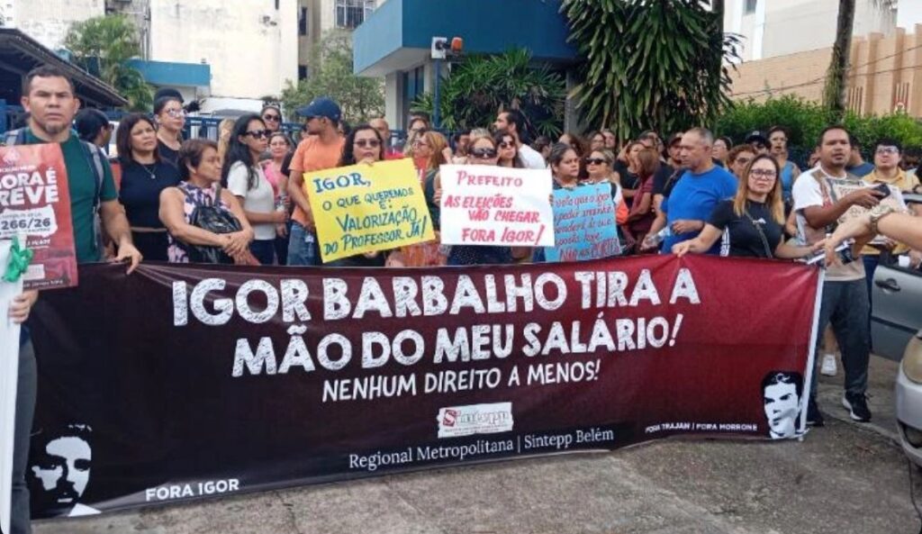 Professores da rede municipal de ensino de Belém realizam, nesta sexta-feira (23), um ato em frente à Secretaria Municipal de Educação (Semec), localizada na Avenida Governador José Malcher, no bairro de Nazaré. A mobilização ocorre em meio à greve iniciada pela categoria nesta semana. Os educadores reivindicam a revogação da Lei nº 10.266/26, que institui … Continue lendo Professores municipais protestam em frente à Secretaria de Educação de Belém