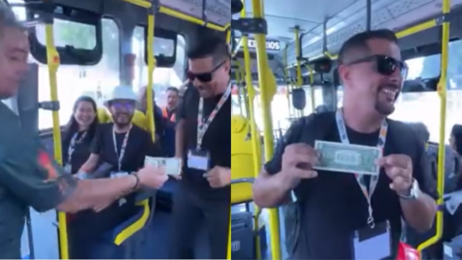 Durante um momento de descontração, profissionais que participam da COP30 em Belém foram filmados brincando dentro de um dos ônibus oficiais do evento. No vídeo, enviado ao direct da página, o grupo aparece simulando um “pedido de dinheiro” a estrangeiros, em tom bem-humorado, enquanto seguem viagem.