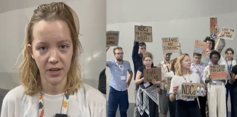 Em um ato de solidariedade e urgência climática, ativistas ambientais de diferentes países se reuniram nesta terça-feira (11) durante a Conferência das Partes (COP) para exigir metas climáticas mais ambiciosas e maior financiamento climático por parte do Norte Global. O protesto foi liderado por Carla Rimsma, porta-voz do movimento Fridays for Future Germany, e aconteceu … Continue lendo Protesto na COP exige metas climáticas mais fortes e maior financiamento do Norte Global
