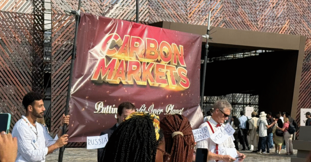 Durante o ato, os manifestantes realizaram performances simbólicas e distribuíram panfletos explicando as críticas às políticas de compensação de carbono e à lentidão das metas de descarbonização. A mobilização foi pacífica e acompanhada de perto por equipes de segurança e observadores da conferência.