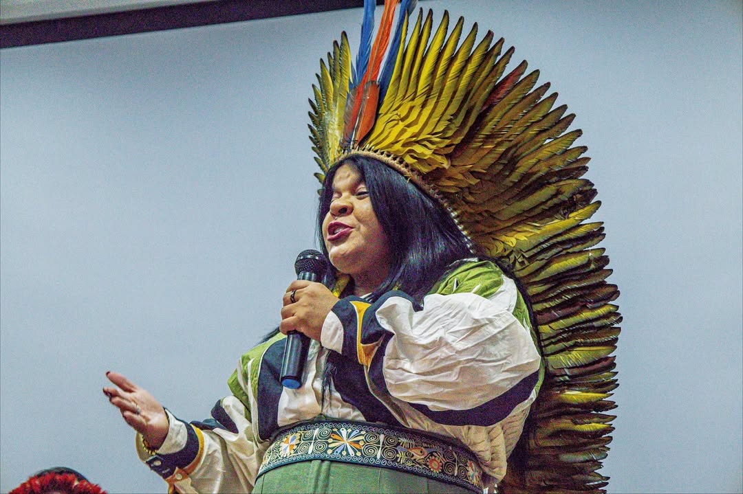 Em sua fala, Sonia Guajajara comemorou o lançamento do Fundo Florestas Tropicais para Sempre (TFFF), mecanismo brasileiro criado para financiar a conservação ambiental com participação direta do MPI em sua construção.