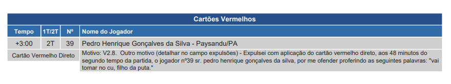 O atleta havia sido denunciado por suposta agressão verbal ao árbitro Anderson Daronco durante o confronto contra o Athletic Club, disputado em 23 de novembro de 2025, pela última rodada da competição. Na ocasião, Pedro Henrique foi expulso nos acréscimos do segundo tempo.