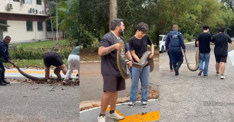 Sucuri de quase 5 metros é resgatada no campus da UFPA, em Belém