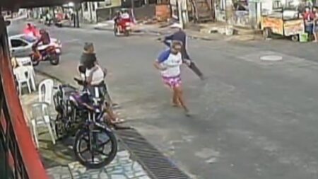 No domingo (24), um homem tentou assaltar frequentadores de um bar localizado na Passagem Mirandinha, no bairro Sacramenta, em Belém. As cenas do ocorrido foram capturadas por câmeras de segurança instaladas nas proximidades. No vídeo divulgado nas redes sociais, o suspeito aparece se aproximando das vítimas como se apenas estivesse passando pelo local. De repente, … Continue lendo Suspeito armado foge após não conseguir roubar em bar no bairro da Sacramenta, em Belém