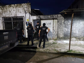 A ação dos criminosos foi registrada por câmeras de segurança do local. Nas imagens, é possível ver a vítima no caixa do mercado quando um dos criminosos se aproxima e entra no estabelecimento.