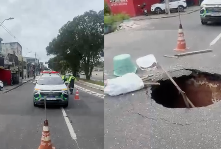 O homem que fez os registros sinalizou para que os condutores que irão passar pelo local tenham cuidado com a cratera.