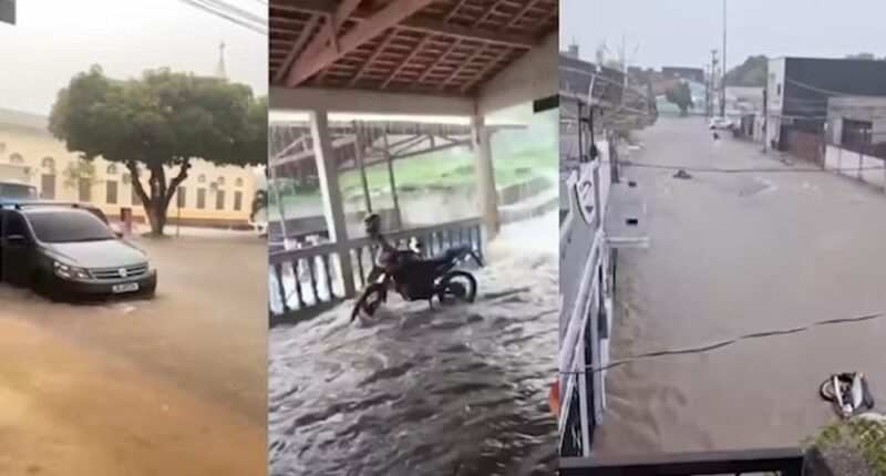Moradores de Baião, no Pará, enfrentaram um forte temporal na tarde de quarta-feira (25), que provocou alagamentos e transtornos em diferentes pontos do município. Imagens registradas por moradores mostram o grande volume de chuva que atingiu principalmente a região central da cidade.
