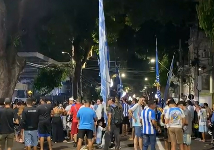 “Vocês ficam escondidos aí dentro. Eu quero ver vocês virem encarar a torcida aqui fora. Vocês deviam ter vergonha cara, porque não vão conseguir vencer mais de 5 milhões de torcedores, que é a torcida do Paysandu”, falou.