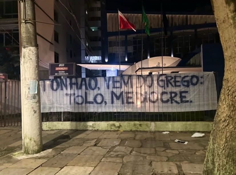 Tonhão vem do grego: tolo, medíocre”, diz a faixa.