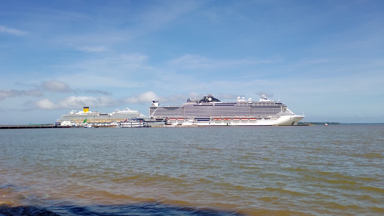 Dois transatlânticos, o MSC Seaview e o Costa Diadema, atracaram na manhã desta terça-feira (4) no porto de Outeiro, em Belém. As embarcações servirão como hotéis flutuantes durante a COP30, abrigando milhares de pessoas ao longo do mês de novembro. Esta é a primeira vez que navios de grande porte chegam à capital paraense com essa finalidade.