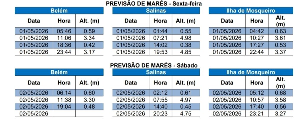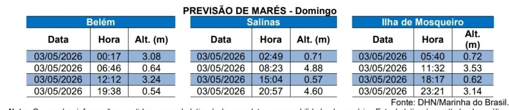 - Cidades como Cametá e Tomé-Açu devem ter chuvas intensas no período da tarde.