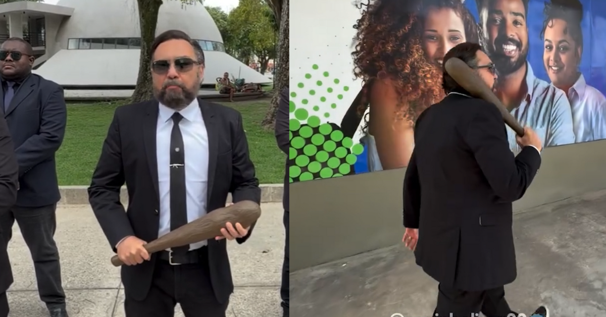 Em vídeos que circulam nas redes sociais, Zezinho aparece segurando o objeto e afirmando que procurava Arthur do Val para “ensinar respeito ao povo paraense”. O ex-deputado havia publicado um vídeo durante a COP30, em que chamou de “comida horrorosa” o prato que experimentou em um restaurante da capital e criticou a infraestrutura do evento.