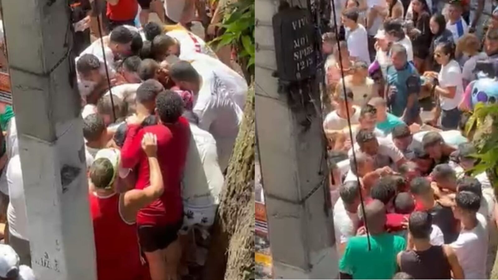 Um vídeo mostra a disputa entre os fiéis durante a procissão pelo pedaço da corda do Círio, gerando correria. Nas imagens, é possível ver fiéis tentando segurar partes da corda, enquanto outros aguardam ansiosos para tocar ou levar um fragmento como lembrança.