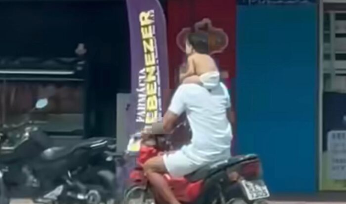 Uma situação de risco envolvendo uma criança e um motociclista levou à atuação das autoridades nesta segunda-feira, 22, em Breves, no Arquipélago do Marajó. Um vídeo que circulou nas redes sociais mostrou o momento em que o condutor trafegava por uma via urbana com o menor sobre os ombros, sem qualquer item de segurança.
