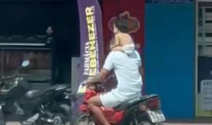 Vídeo: motociclista é flagrado pilotando com criança nos ombros no Marajó