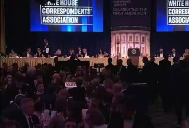 O presidente dos Estados Unidos, Donald Trump, e a primeira-dama, Melania Trump, foram retirados às pressas pelo Serviço Secreto na noite deste sábado (25), após disparos de arma de fogo durante o tradicional jantar com correspondentes da Casa Branca. O incidente ocorreu em um hotel na capital norte-americana e resultou na prisão de um suspeito, … Continue lendo VÍDEO: Trump é retirado às pressas após disparos em jantar com correspondentes em Washington